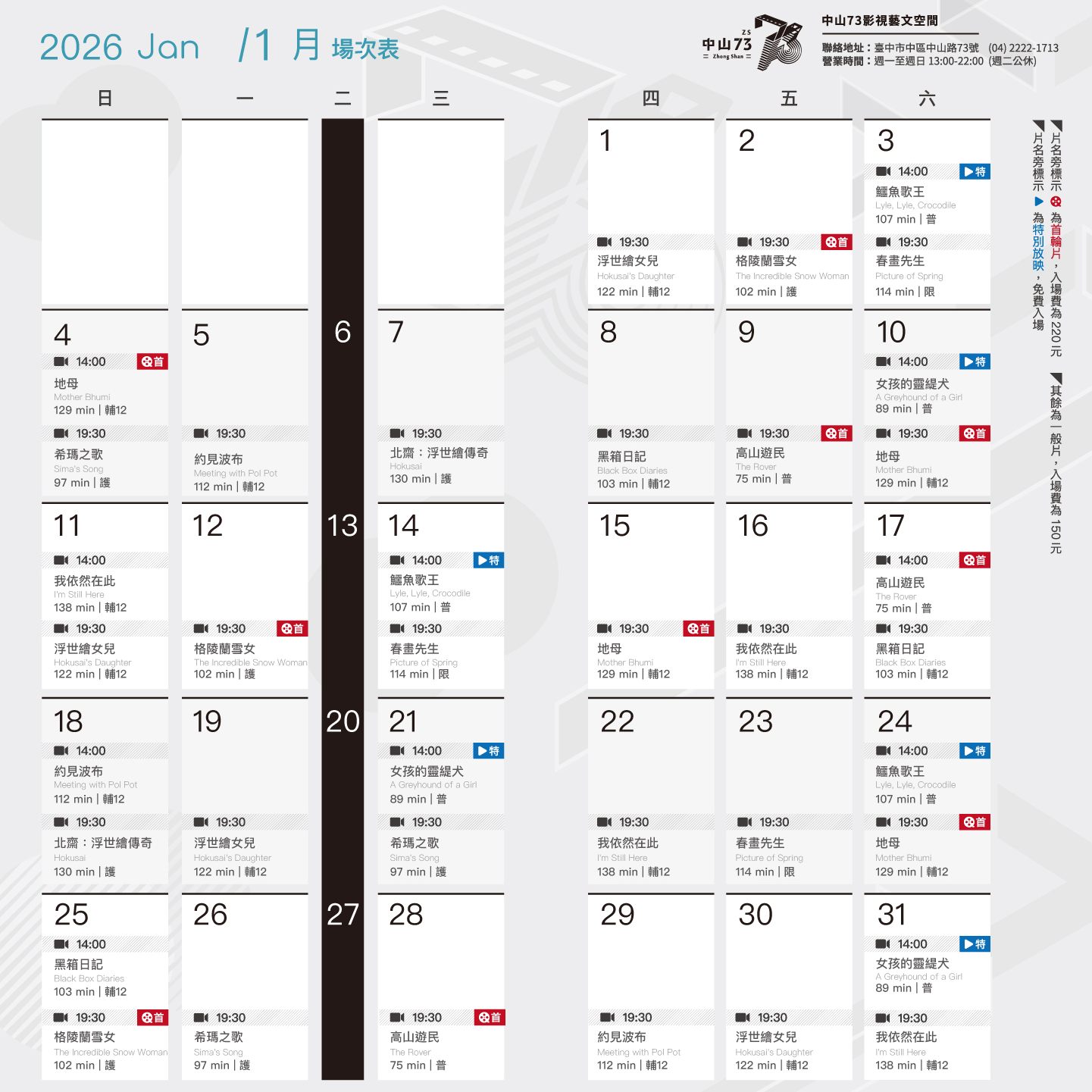 場次表由 中山73影視藝文空間 提供。